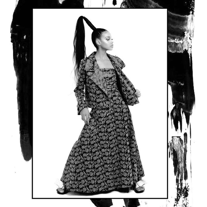 The SS18 Fashion Collection 'Noire' is a stunning mixture of monochrome floral prints and delicate lines. Each piece in this collection emphasizes the beauty, femininity, and power of African shapes and patterns.